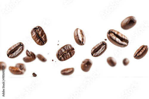 Coffee beans falling in the air isolated on a white background. Coffee beans flying, ai