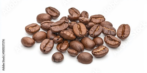 Coffee beans on solid white background, single object