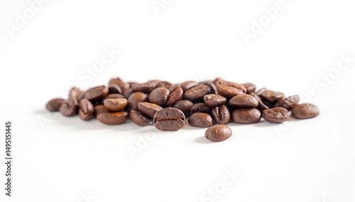 Coffee beans on white background. Pile of coffee beans. Close up image.