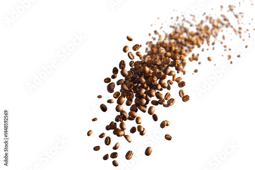 Coffee Beans Tumbling Through The Air isolated on a transparent background