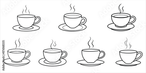 cup, vector, hot drink, drink, cafes, mug, tea, illustration, hot, set, design, espresso, food, symbol, cappuccino, pattern, beverage, breakfast, saucer, caffeine, eatery, coffee cup, teacup