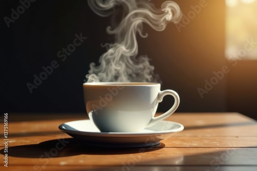 Coffee cup with misty smoke suspended in air , vapor, coffee