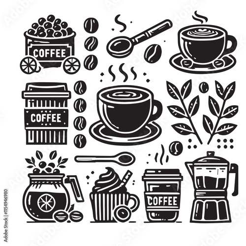 object, cup, fresh, illustration, silhouette, hot drink, background, collection, eatery, set, bean, graphic, vector, hot, signs, isolated, icon, symbol, cafes, shiny, food, drink, water, label, abstract, texture, good morning, nature, natural, business