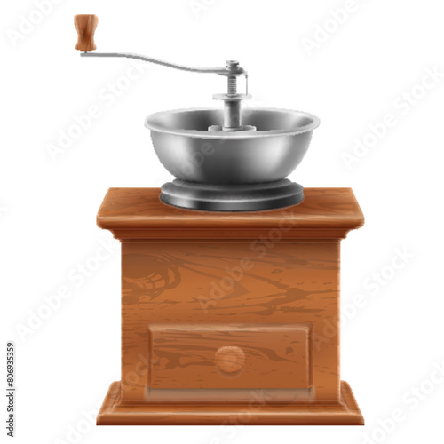 Coffee grinder isolated on a white background. Realistic vector illustration