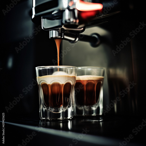 Coffee machine making black coffee or espresso, close up view.generative ai