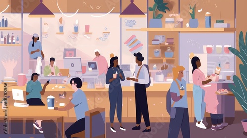 cafes, illustration, technology, digital, modern, cafes, hot drink, laptop, smartphone, tablet, cyberspace, website, app, menu, barista, cappuccino, latte