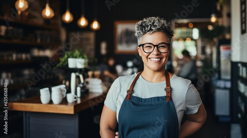 Coffee shop owner black woman smiling. African American barista. Black-owned business.