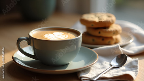 Coffee with Latte Art and Cookies: A cozy still life perfect for a relaxing morning or afternoon break.