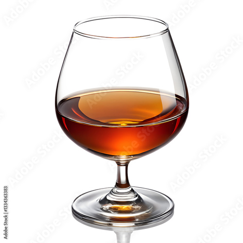 Cognac glass with amber liquid on a transparent background