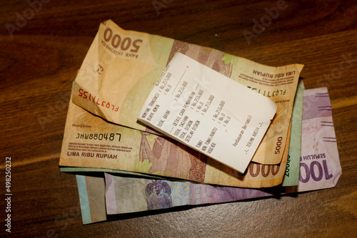 Coins change on the receipt. Indonesian rupiah currency