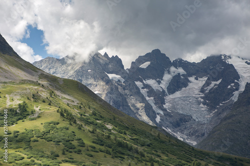 mountain, landscape, heaven, nature, green, view, cloud, panorama, blue, vale, summer, forest, travel, rock, alps, grass, peak, hill, snow, beauty, meadow, tour tourism, outside