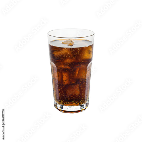 Cold glass of dark cola with ice perfect for refreshing beverage, cafe menu, or summer themes