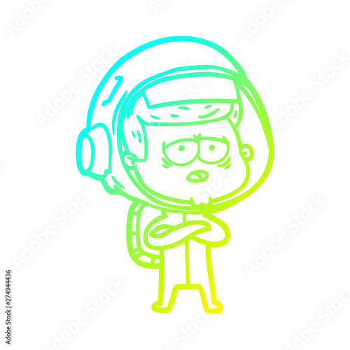cold gradient line drawing cartoon tired astronaut