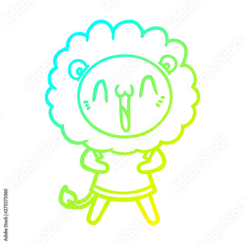 cold gradient line drawing happy cartoon lion