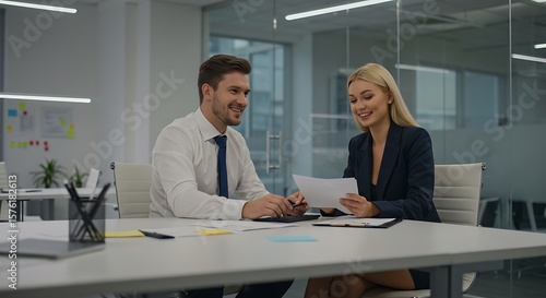 business, collaboration, teamwork, partnership, success, office, modern, laptop, datum, analysis, professional, happy, smiling, colleague, co-worker, male, female, corporate, finance, marketing, strategy, project, development, growth, communication, technology, startup, executive, manager, entrepreneur, work, meeting, discussion, planning, report, document, idea, innovation, solution, positive, productive, efficiency, smart, casual attire, desk, indoor, computing