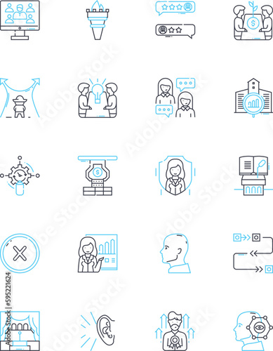 Collaborative teams linear icons set. Synergy, Partnership, Cooperation, Collaboration, Unity, Alliance, Joint effort line vector and concept signs. Mutualism,Coordination,Cohesion outline