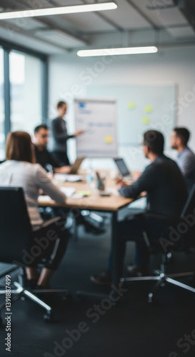 Collaborative Teamwork: Engaging Presentation & Focused Brainstorming Session in Modern Office Space.