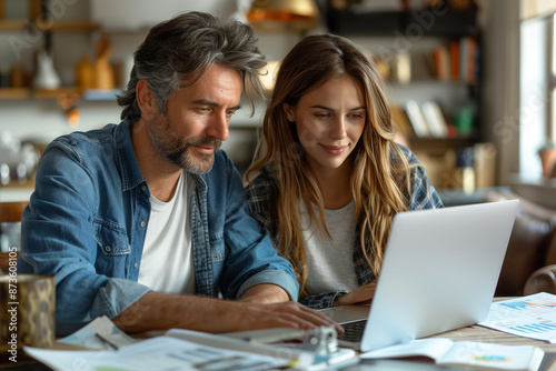Collaborative Teamwork: Young Business Partners Working on Laptop in Cozy Home Office