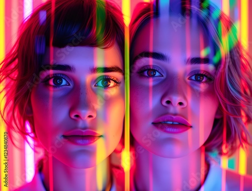 college, closeup, male, female, eye, isolated, coloured, neon, many-coloured, stripes, concept, equality, unification, all, nation, age, interest, diversity, human, right, stock, photo