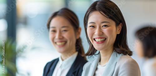 asian, japanese, woman, colleague, office, teamwork, diversity, smiling, happy, professional, modern, co-worker, workplace, positive, together, businesswoman, multicultural, cooperation, job, career, technology, successful, 2, close, shot, team, spirit, corporate