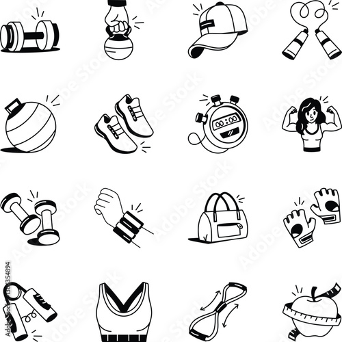Collection of 16 Hand Drawn Gym Icons