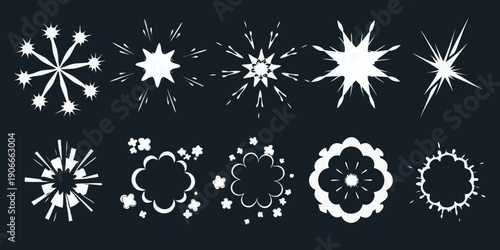 Collection of abstract white sparkle and explosion effects on black background