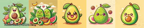 cute, vector graphics, food, cartoon, vector, collection, illustration, avocado, minimalism, creativity, modern style, fruit, avocado, graphic elements, graphic design, facial expression, digital illustration, digital artwork, anthropomorphism, comic, healthy, vegetarian, fresh, happy, grape
