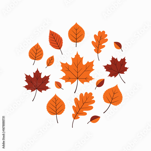 autumn, fall, leaf, seasonal, nature, foliage, leaf, tree, season, change, colours, orange, red, brown, yellow, pattern, design, illustration, decorative, element, circle, collection, overhead, vector, graphic, maple, oak, plant, seamless, october, green, natural