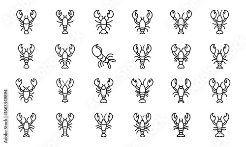 Collection of Black and White Food Icons – Fruits, Drinks, Seafood, Noodles, Pizza, Meat, Desserts, and Bakery Line Vector Illustrations for Restaurant, Cafe, and Food Blog Design