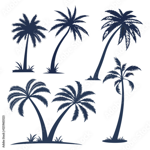 Collection of Black and White Palm Tree Silhouettes, vector on white background