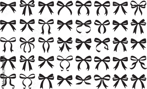 bow, attaching, ribbon, bow, ribbon, collection, set, assortment, variety, different, shape, style, size, decorative, embellishment, accessory, fashion, design, graphic, illustration, drawing, black-and-white, silhouette, isolated, white background, craft, sewing, gift wrapping, cardboard box, clothing, detail, pattern, repetition, simple, elegant, classic, vintage, retro, graphic design, element, component