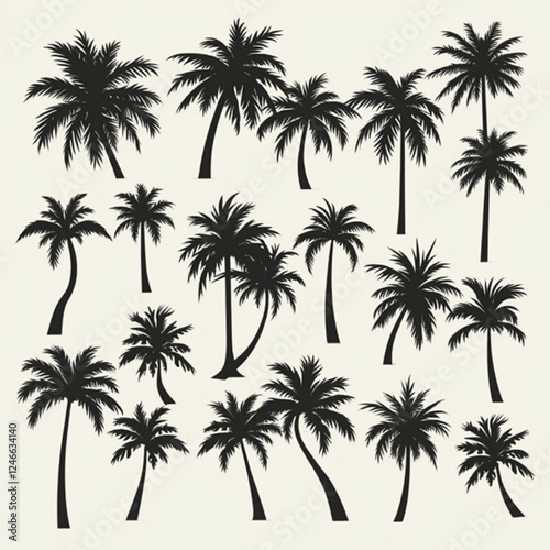 Collection of Black Silhouette Palm Trees vector art bundle design