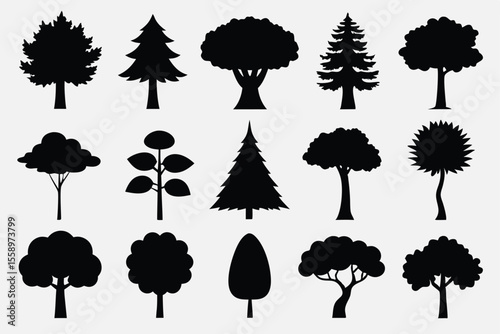 tree, tree, silhouette, icon, black, white, background, graphic, design, element, set, collection, nature, forest, wood, timberland, plant, flora, botanical, illustration, vector, clip art, symbol, shape, deciduous, coniferous, evergreen, oak, maple, pine, fir, bush, shrub, landscaping, ecology, environment