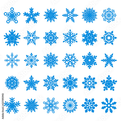 collection of blue vector snowflakes on white background