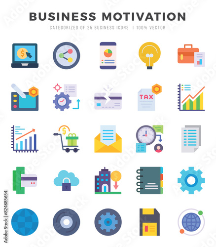 Collection of BUSINESS MOTIVATION 25 Flat Icons Pack.