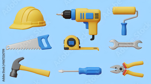 construction, tool, bricolage, hardware, equipment, drill, hammer, saw, wrench, screwdriver, plier, measuring tape, building, repair, renovation, workshop, industry, project, home improvement, construction worker, safety, yellow, blue, helmet, tool, hard hat, hat, work, men at work, protection, builder, three-dimensional, hard, industrial, protective, contractor, object, plastic, hard hat