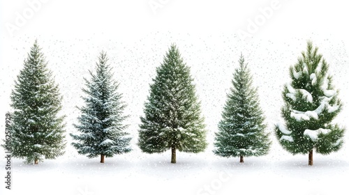Collection of christmas Trees with Snow isolated on transparent or white background