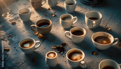 Collection of coffee cups set on a marble surface
