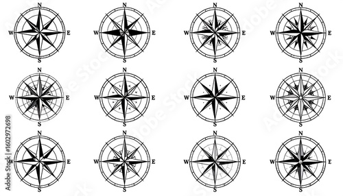 compass, rose, circular, graphic, design, black, white, nautical, direction, north, south, east, west, illustration, pattern, symmetric, vector, geometric, simple, navigational, vintage, antique, element, graphic, outline, style, wind