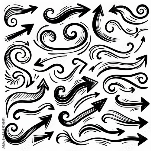 Collection of curved arrows in ink Vector hand drawn sketchy arrows pointing different directions