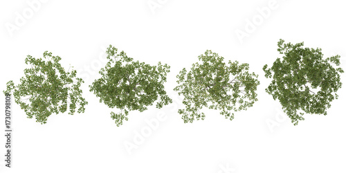 Collection of Cyclobalanopsis trees on transparent background from the top view