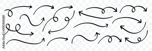 Collection of doodle arrows, lines, symbol. Curved arrow icons. Arrow symbol collection. Sketch arrow design. Vector illustrator