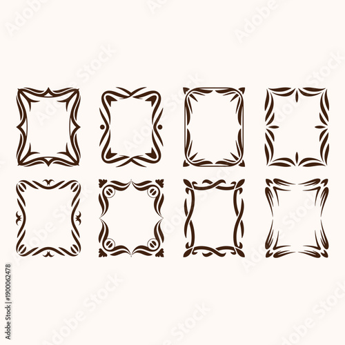 frame, border, decorative, ornate, vintage, abstract, swirling, brown, collection, set, square, classic, flourish, filigree, ornamental, pattern, symmetric, frame, 8, pale, cream, background, distinct, intricate, arranged, vector, fashion, illustration, clothing, design, shirt, icon