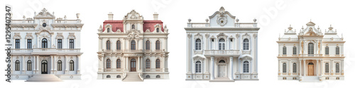 Collection of elegant neoclassical and baroque style historic buildings with ornate facade designs columns and symmetrical structures in a charming Italian town