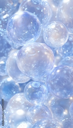 Collection of ethereal translucent spheres with brilliant reflective light