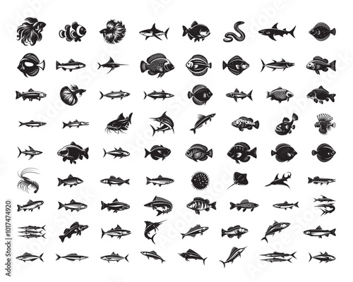 Collection of Fish Silhouette Design - Fish Vector illustration in black and white