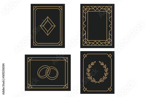 art deco, invitation, gold, geometric, frame, wedding, card, black, template, wedding band, laurel wreath, background, elegant, luxury, vintage, retro, border, symbol, set, design, decorative, ornament, classic, line art, minimal, abstract, pattern, cover, nobody