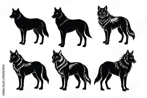 wild, illustration, animal, nature, art, wildlife, graphic, vector, design, mammal, fox, fur, symbol, sitting, black, tail, predator, set, zoo, head, isolated, icon, silhouette, background, badge, collection, shape, logotype, drawing, white, group, hunting, catching, artwork, signs, cartoon
