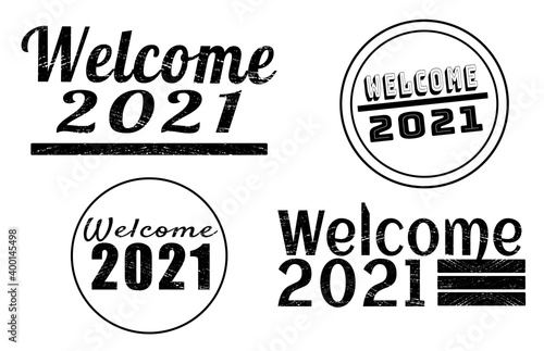 Collection of grunge welcome 2021 labels