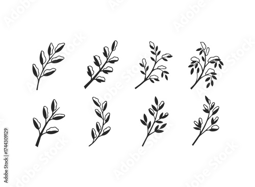 Collection of handdrawn leafy branches